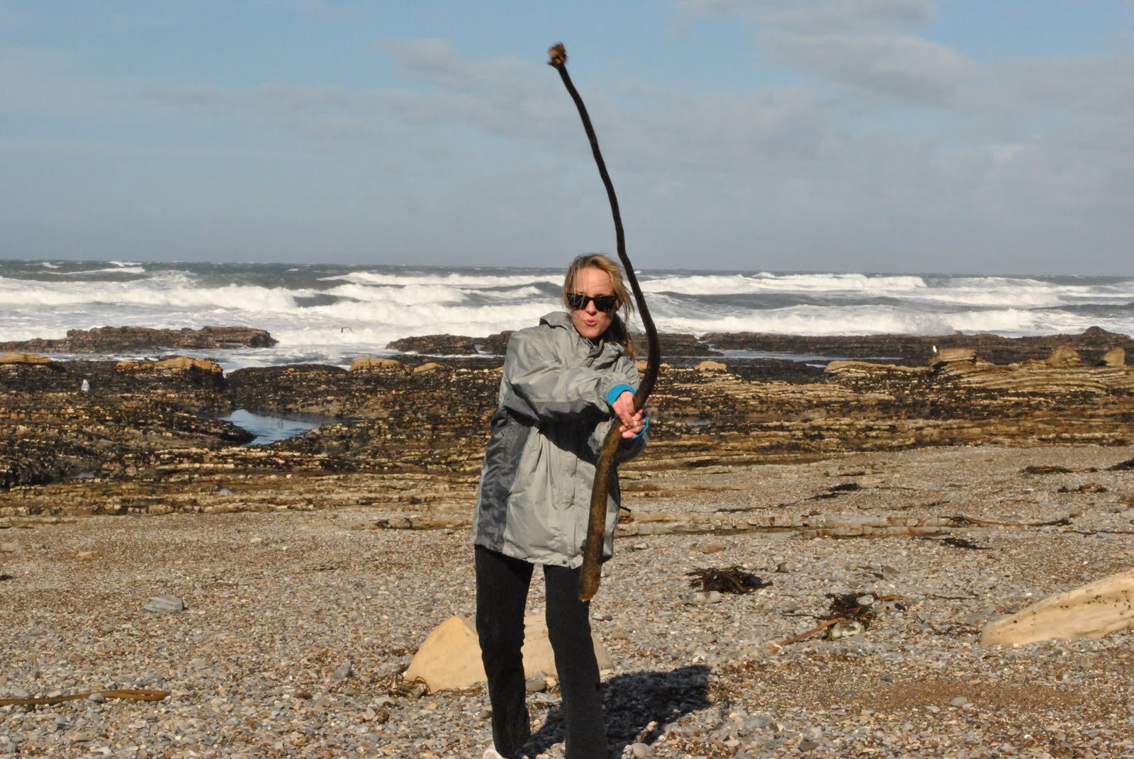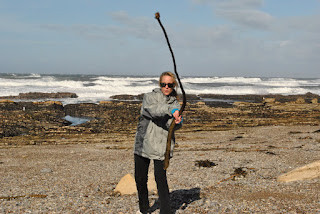 We made our way down to the beach to escape the wind and explored the tidepools for a bit. Katie frolicked around the beach and did her best Highlander/Indian Jones impression with a huge rope of kelp. We were both so excited to be on the shores of the Pacific again, we couldn't wipe the smiles off of our faces. We walked north towards Morro Rock and headed up the creek at Hazards into the eucalyptus forests making our way back to our car.